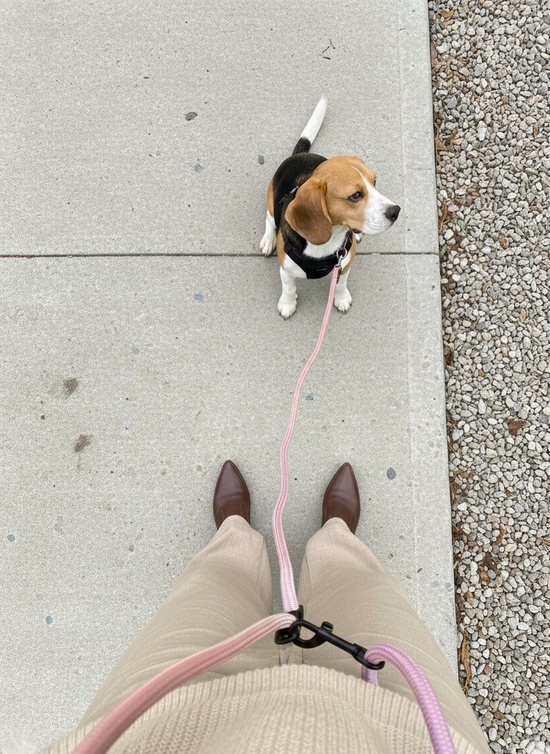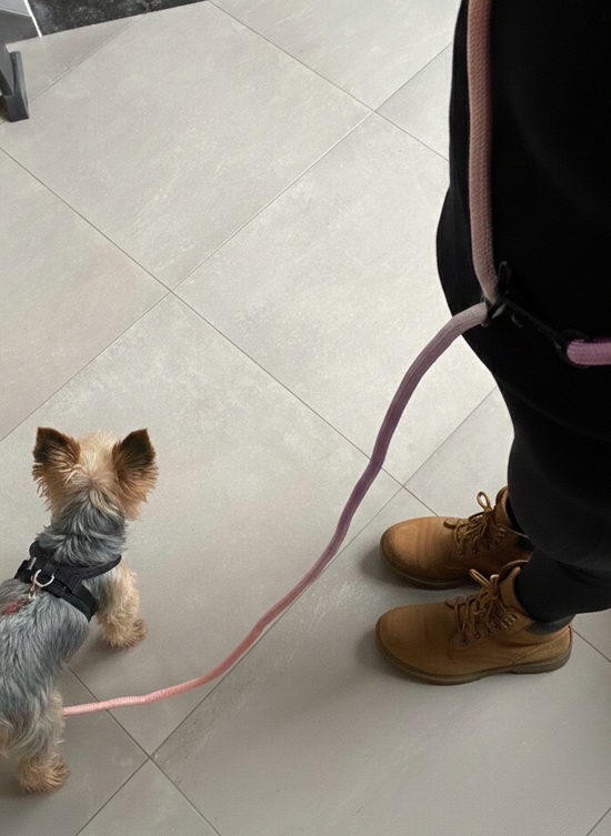 Conçue pour se porter en bandoulière, la laisse s’ajuste parfaitement à votre corps et vous laisse les mains totalement libres. Plus besoin de choisir entre confort et style : vous gardez le contrôle tout en bougeant naturellement.